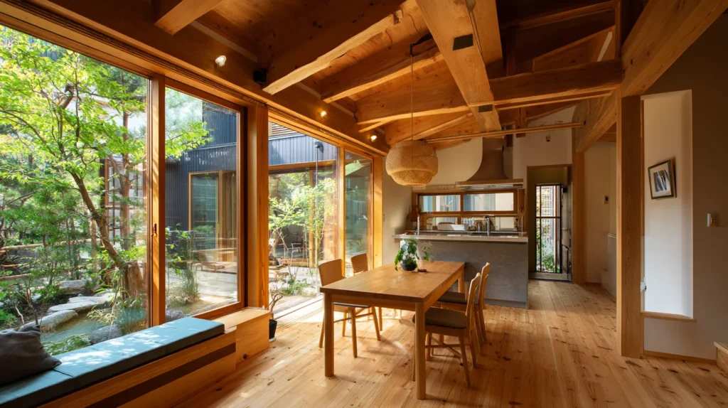 無垢材は湿度変化の影響を受けます。だからこそ、断熱・気密計画や通風計画とセットで考える必要があります。