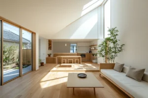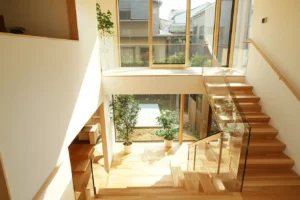 • 面積以上の広がりを生む空間設計:視線の抜けを意識した窓配置や、天井高さの変化、階段や吹き抜けの活用などにより、実際の面積以上の広がりを感じさせることができます。